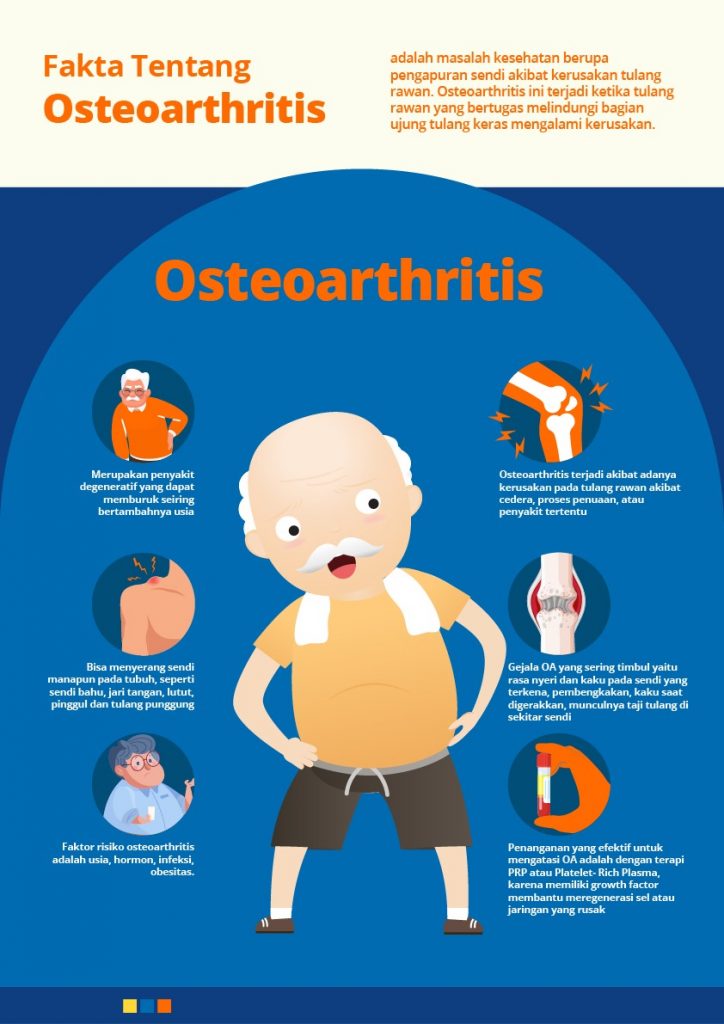 Radang sendi kronis atau osteoarthritis paling sering terjadi pada usia lanjut. Namun, kondisi ini juga sering menyerang orang yang berusia lebih muda. Gejala OA bervariasi tergantung pada tingkat keparahan penyakit dan akan memburuk seiring waktu. Oleh karena itu, untuk mencegah perburukan kondisi dan meringankan gejalanya, berkonsultasilah dengan dokter untuk mendapatkan penanganan yang tepat.