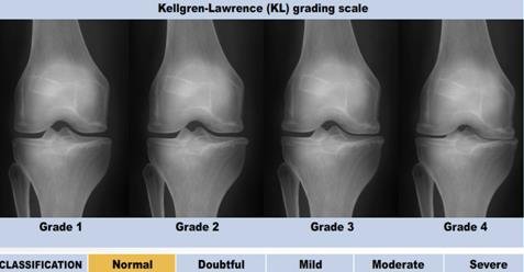 Kellgren-Lawrence Grading: Tingkat keparahan osteoarthritis (Source: LNMIA 10358, pp. 376)